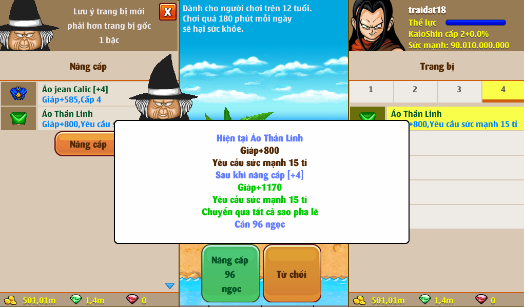 - Nguồn hồi phục KI và HP của các chiến binh chính là bằng đậu thần. Đậu thần có thể nâng cấp được, và mỗi lần nâng cấp sẽ tốn một lượng vàng nhất định. Đậu cấp càng cao thì khả năng hồi phục càng nhiều.
