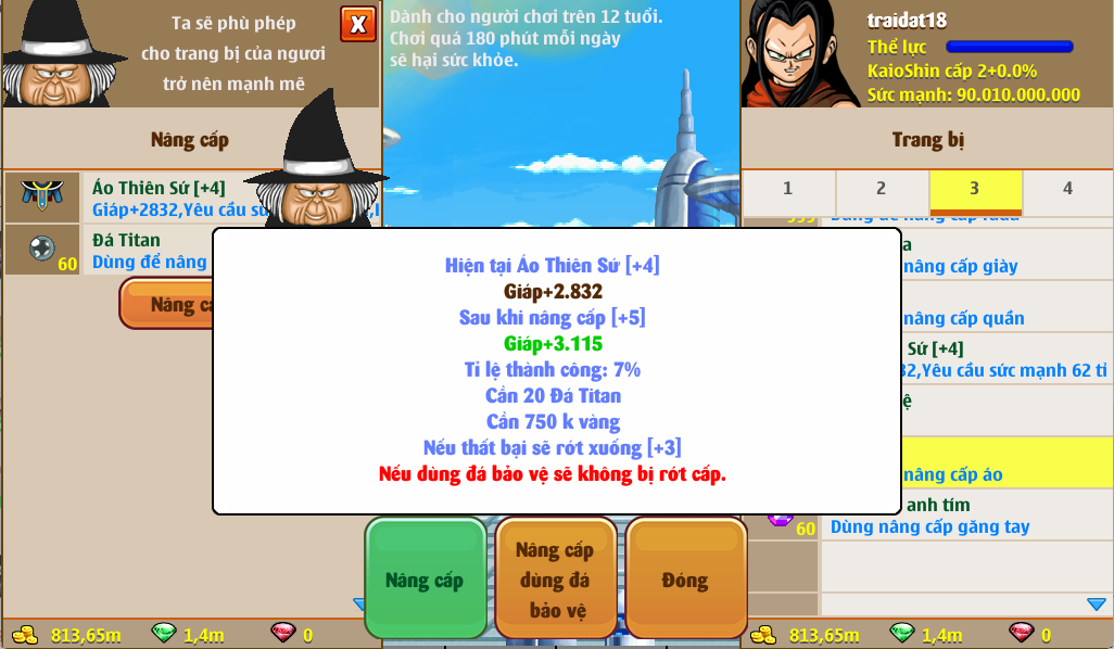 + Ngoài ra còn có thêm Đá bảo vệ giúp bảo vệ cấp độ tránh bị rớt cấp