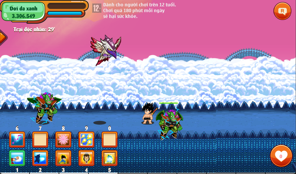 - Xuất hiện 1 boss với tên gọi Broly ban đầu mới xuất hiện sẽ rất yếu. Nhưng khi đánh hắn, hắn sẽ mạnh dần lên đến khi hắn biến hình thành siêu xayda tóc vàng (Super Broly) và sẽ dắt theo 1 đệ tử. Nếu bạn đánh thắng Super Broly bạn sẽ nhận được tên đệ tử ấy.