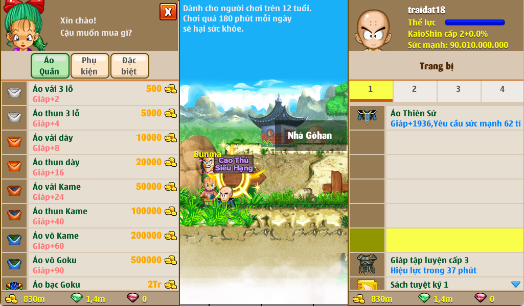 - Nhân vật có thể kiếm vật phẩm trang bị cho nhân vật của mình bằng cách tích lũy vàng trong game hoặc đánh quái, hạ Boss rớt ra.